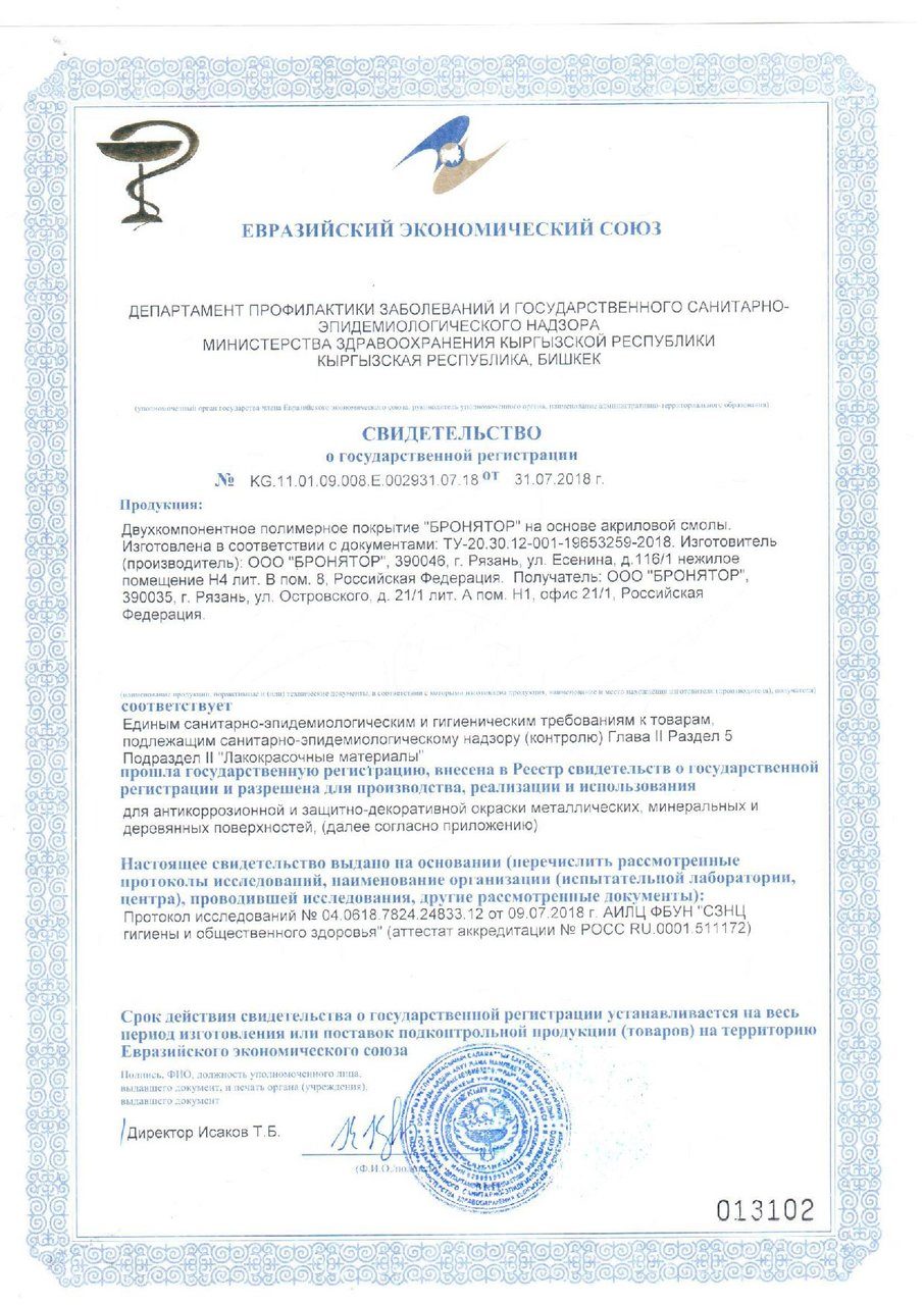 "Бронятор - защитный лак" на акриловой смоле.Применяется для окраски любых ранее окрашенных поверхностей или при комплексной окраске "ультра стойким защитным покрытием Бронятор".